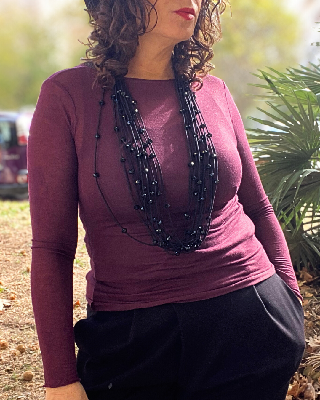 Maglia sottogiacca in cachemire e viscosa, da utilizzare come capo unico, o strato aggiuntivo sotto a cardigan e maglioni. Tessuto caldo ed elastico. La taglia unica consigliata fino alla 48