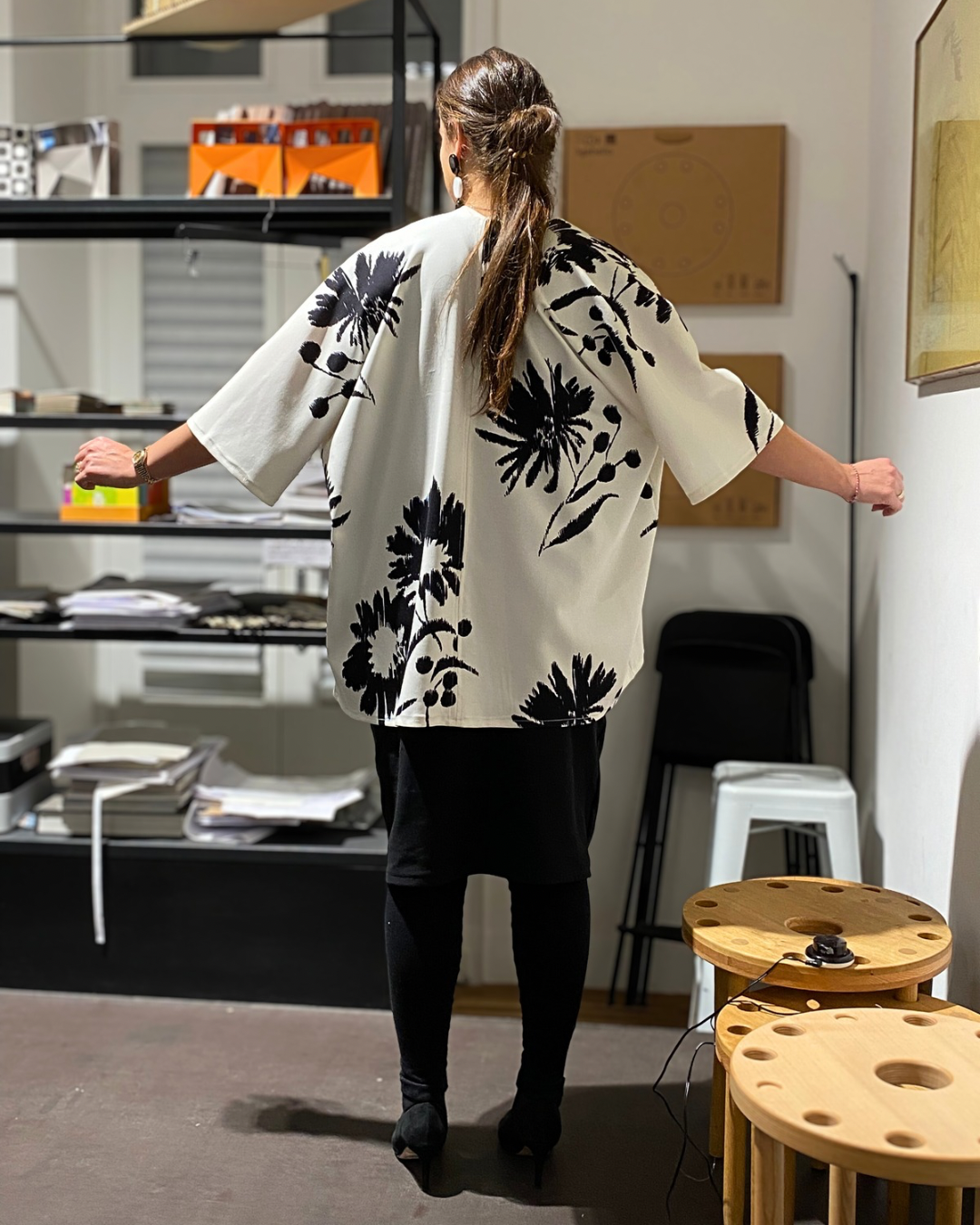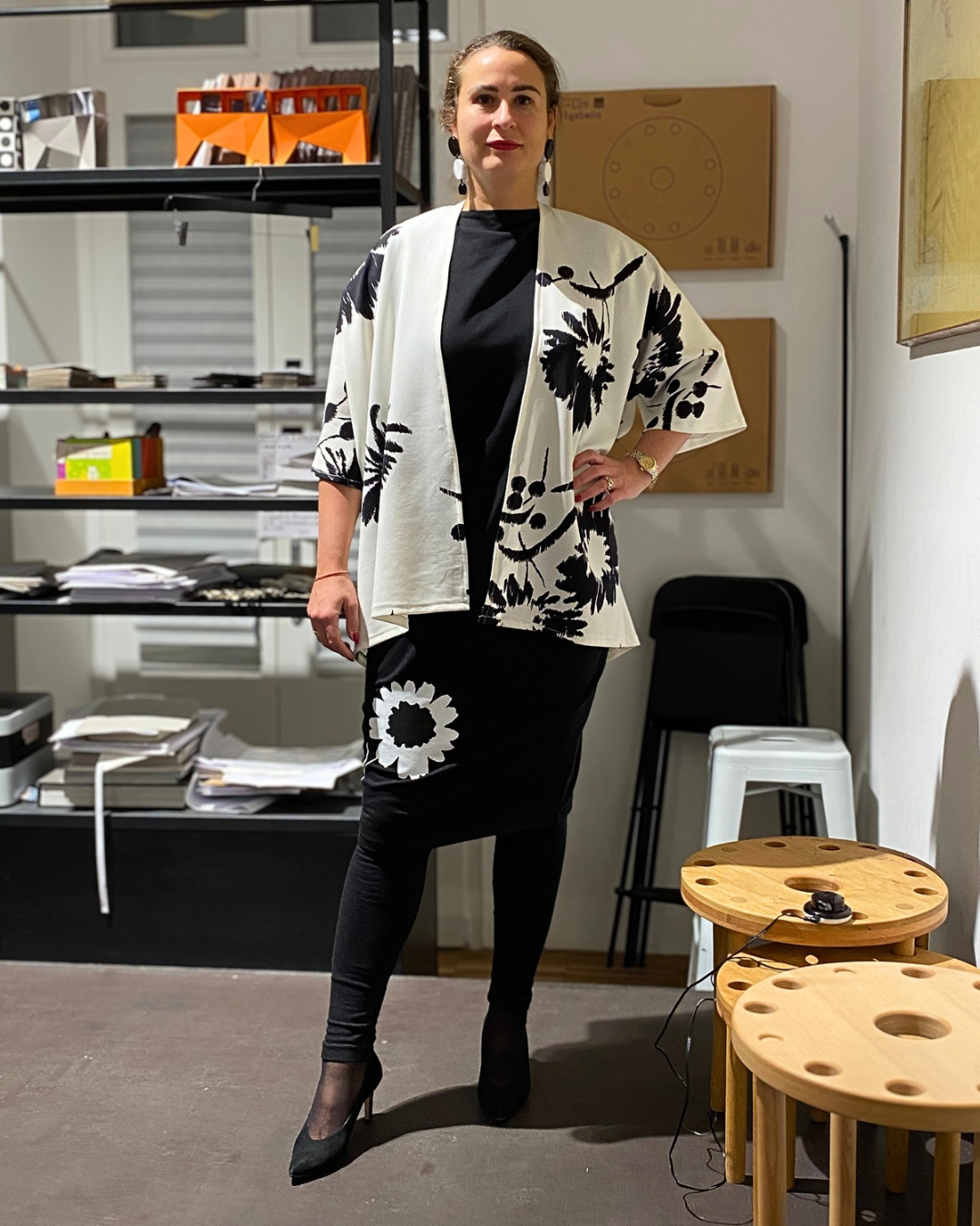 Il secondo outfit che ha debuttato sulla passerella all’Italian Creativity On The Run Way a Ginevra è composto da: abito Kyoto (149€) e Kimono Kaori (149€). Orecchini (35€)