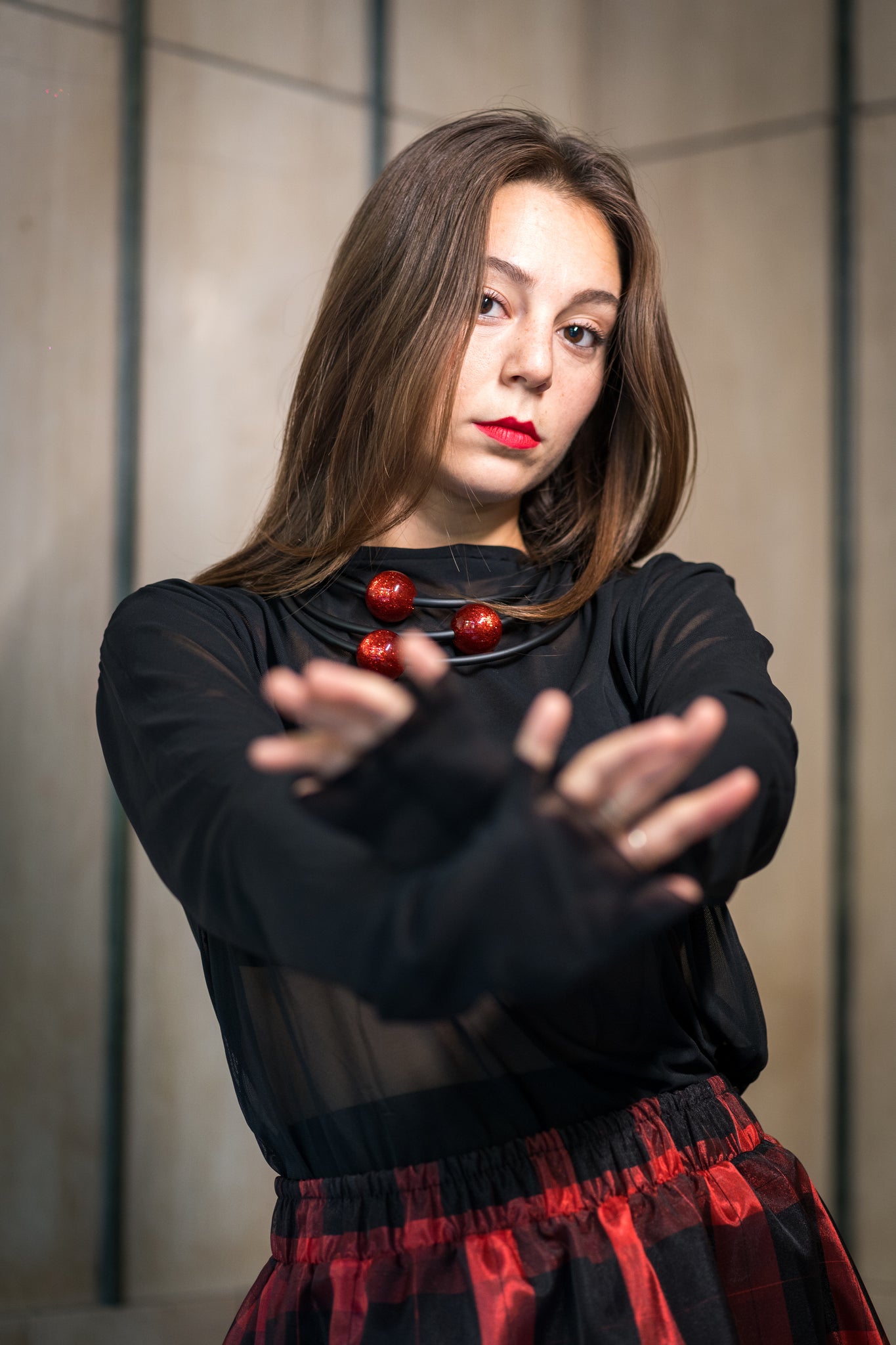 Maglia realizzata a mano in tulle in seta leggermente elasticizzato. Il design semplice e raffinato la rende perfetta per tutti gli outft. Le cuciture sono a taglio vivo e le maniche sono a guanto.