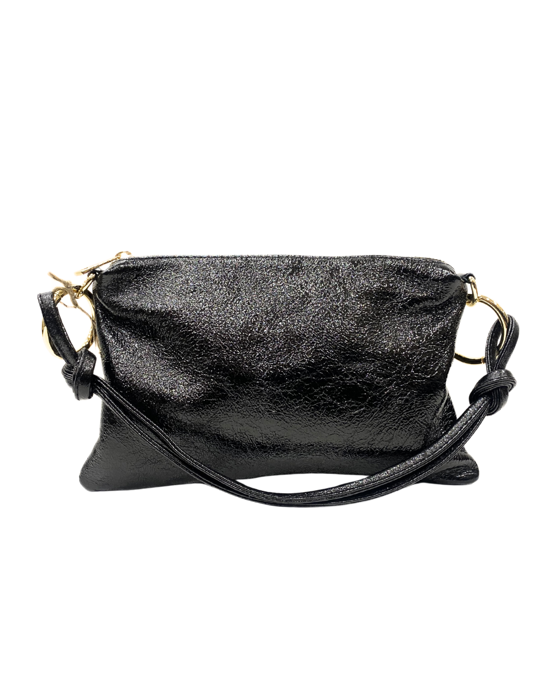 La borsa in pelle laminata ha una chiusura con zip e una tracolla aggiuntiva in dotazione. Questo modello è progettato per adattarsi a diverse occasioni, dal giorno alla sera, combinando eleganza e funzionalità. La pelle di alta qualità garantisce durata e resistenza nel tempo.
