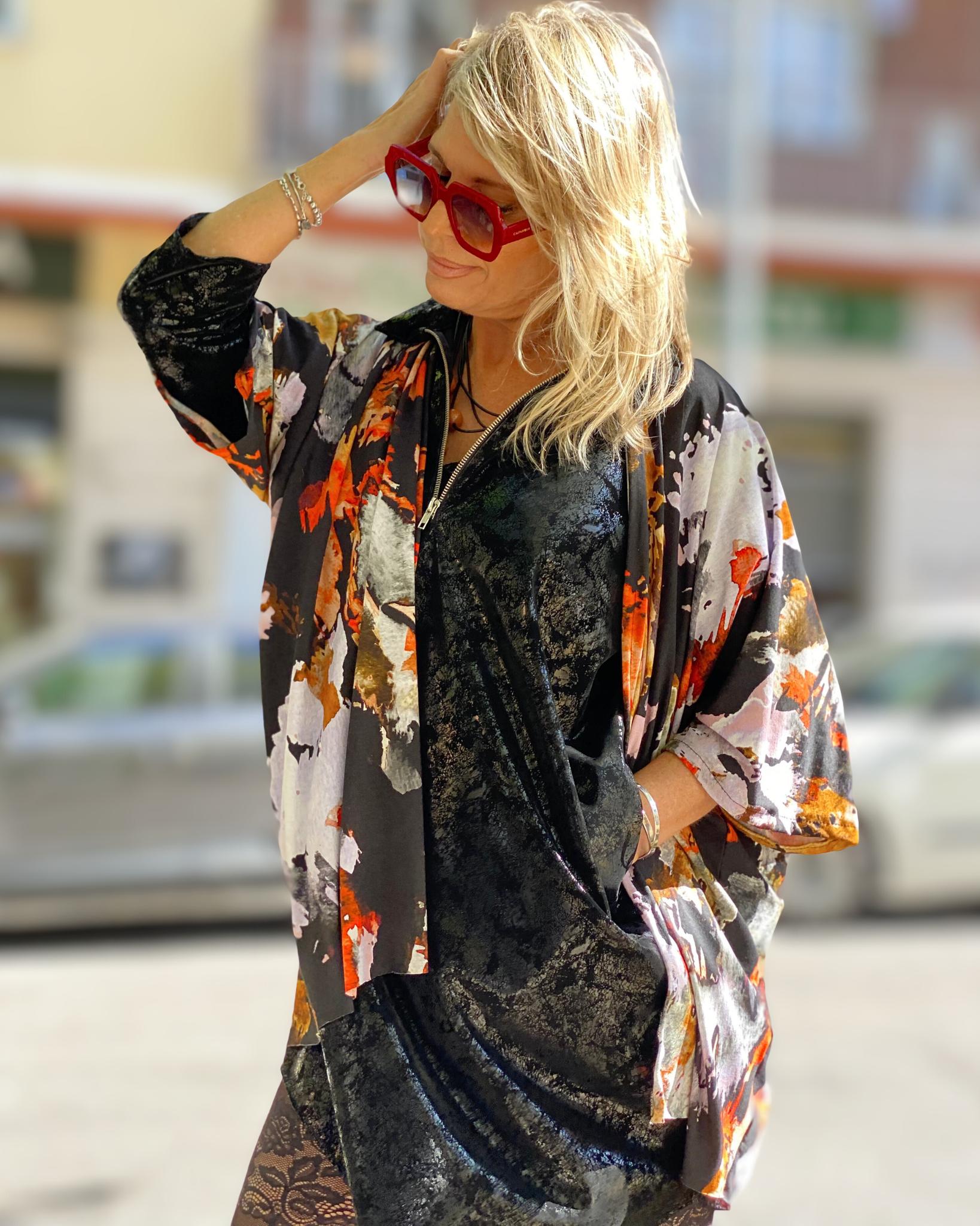 Il kimono sartoriale Kaori è il capo perfetto per un look unico e versatile. Non è solo una giacca o un cardigan, ma ciò che desideri, per completare il tuo stile in modo originale. Linea morbida, lunghezza al fianco, con qualche centimetro in più nel dietro. Questa limited edition è realizzata in jersey di cotone. La vestibilità unica arriva fino alla taglia 52.