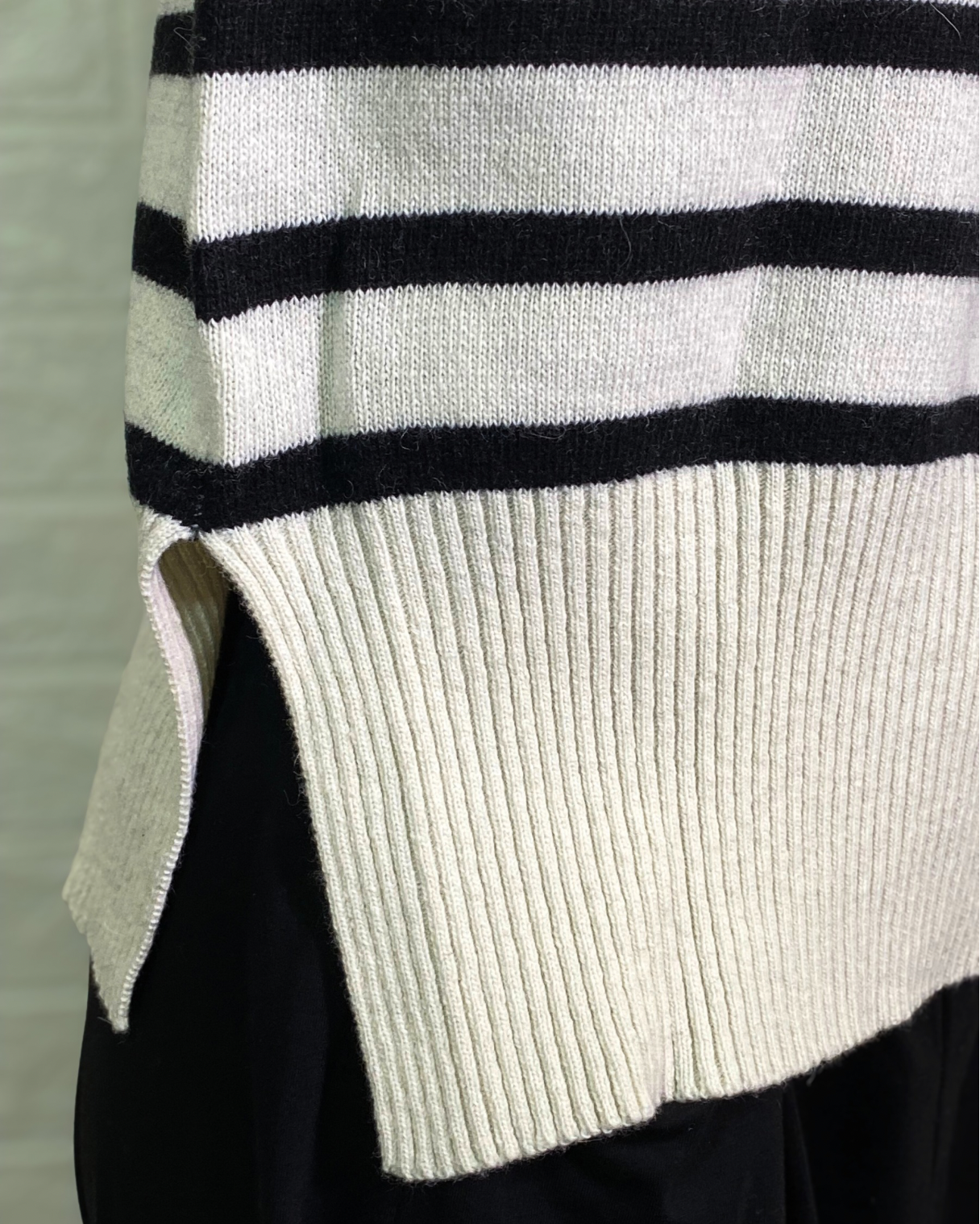 Maglione a collo alto confortevole e caldo. Realizzato in misto lana merino, cachemire e viscosa, presenta dei comodi spacchetti ai fianchi per una vestibilità super comoda. Il filato è super morbido ed è adatto anche alle pelli più sensibili. La misura è unica e veste fino alla taglia 48. Prodotto italiano.