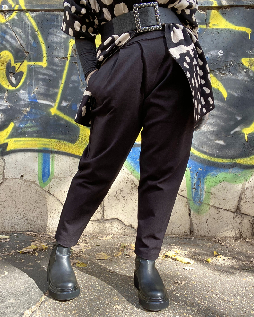 Il pantalone Sara è tra i nostri capi best seller! Realizzato a mano in tessuto punto milano, è ideale per tutte le occasioni. È dotato di un girovita elastico e comode tasche, la linea è morbida sul fianco, con un leggero portafoglio nel davanti, per restringersi verso la caviglia: è perfetto per l’ufficio, il tempo libero, e anche occasioni speciali: la versatilità è il suo punto di forza! Ottimo fit per tutti i tipi di silhouette, il taglio strategico avvolge l’addome, camuffando la pancetta. La misura unica ha una vestibilità dalla taglia S fino alla taglia L, ma puoi richiedere una personalizzazione su misura; se la pronta consegna è terminata, elaboreremo il tuo ordine in 4 settimane lavorative: contattaci per più info!