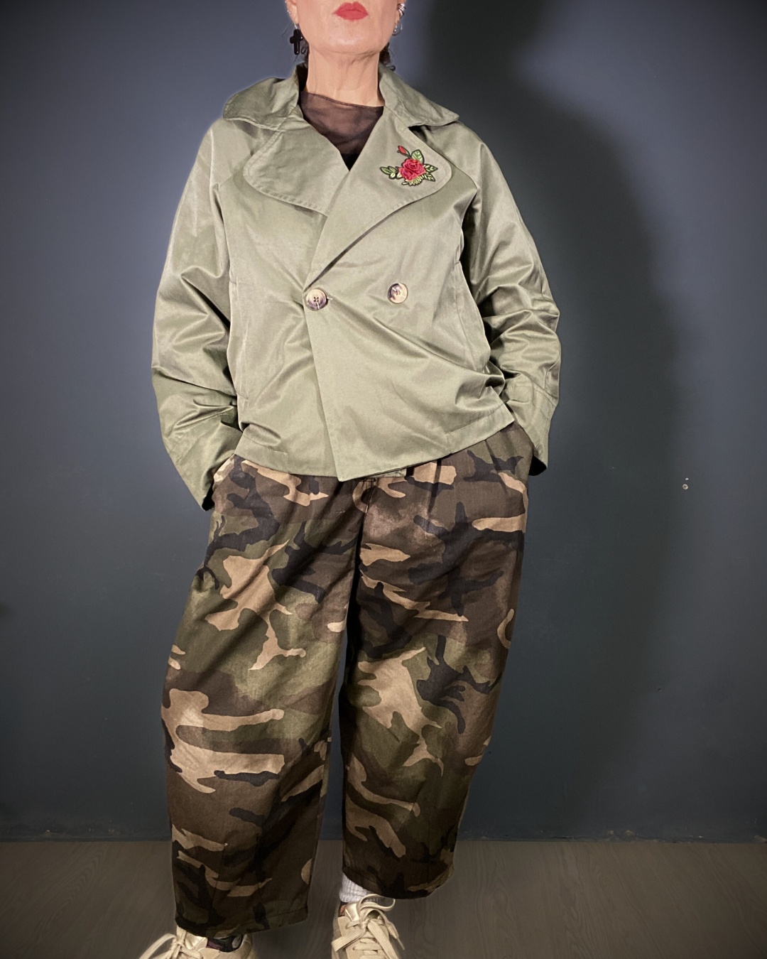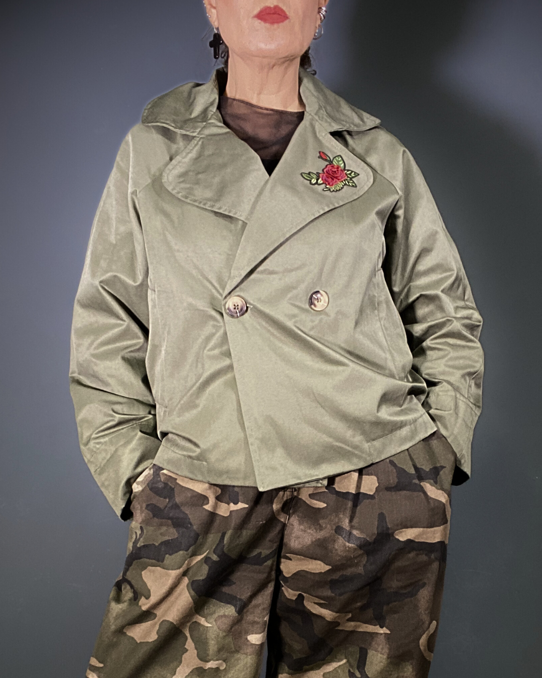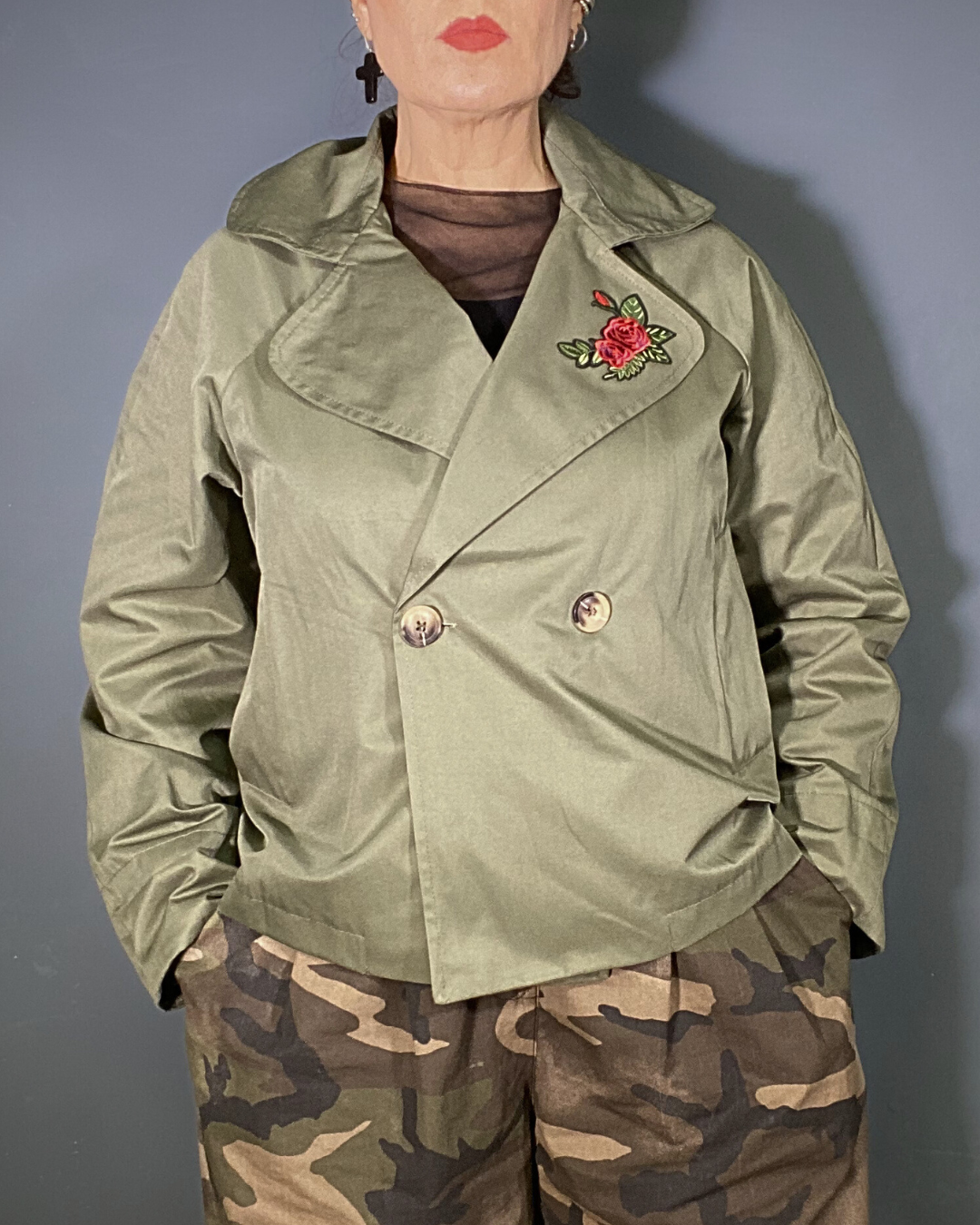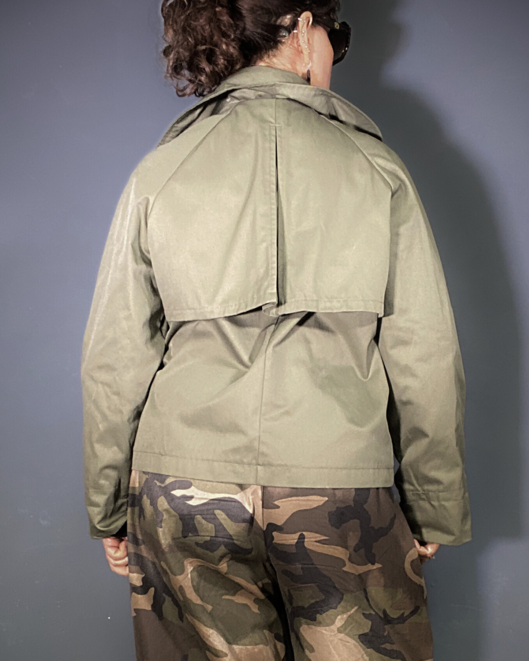 Trench in gabardine di cotone. Si distingue per la silouetthe pulita, che lo rende il capo ideale per la mezza stagione, da indossare con abiti e pantaloni. Realizzato in Italia, é resistente alla pioggia, con spalle strutturate, abbottonatura doppio petto, senza fodera. Sono presenti comode tasche a filetto e patta antipioggia sul retro. La vestibilità è rilassata, acquista una taglia in meno per avere un effetto più accostato.